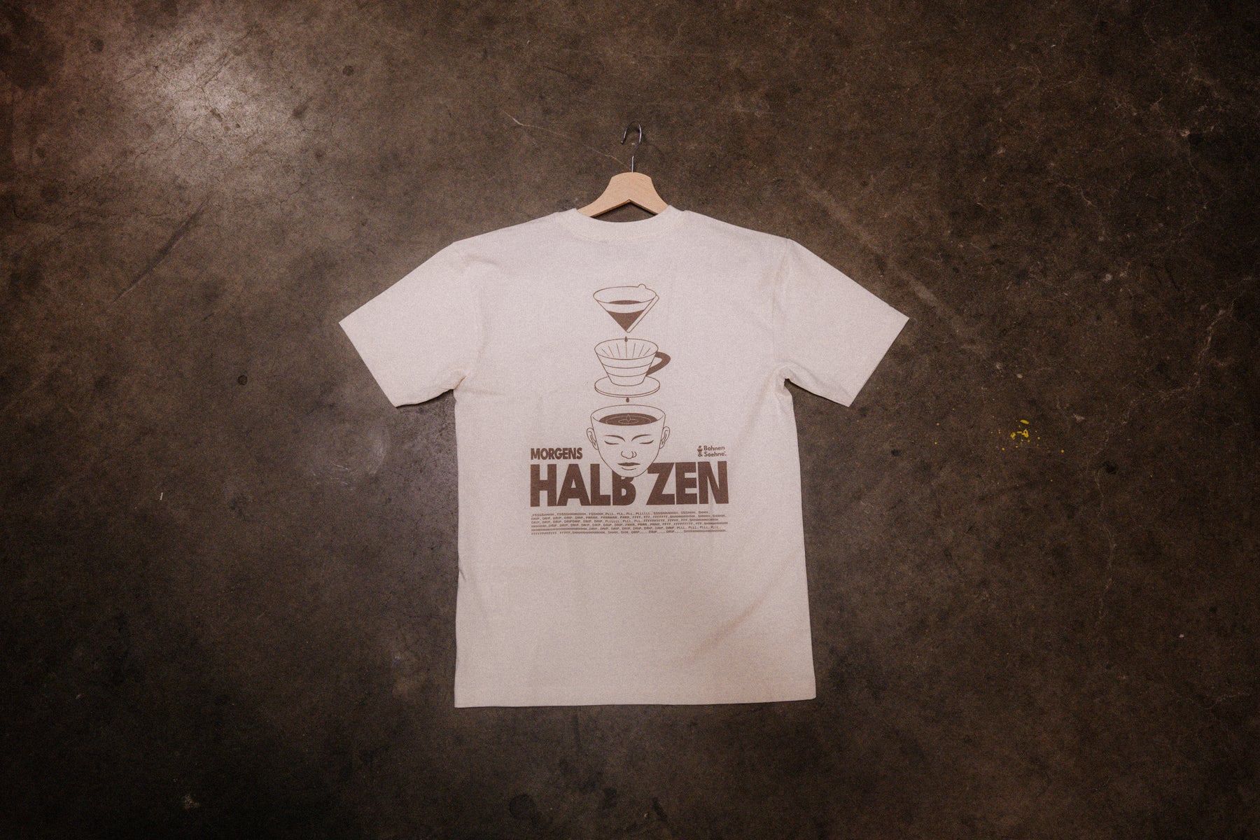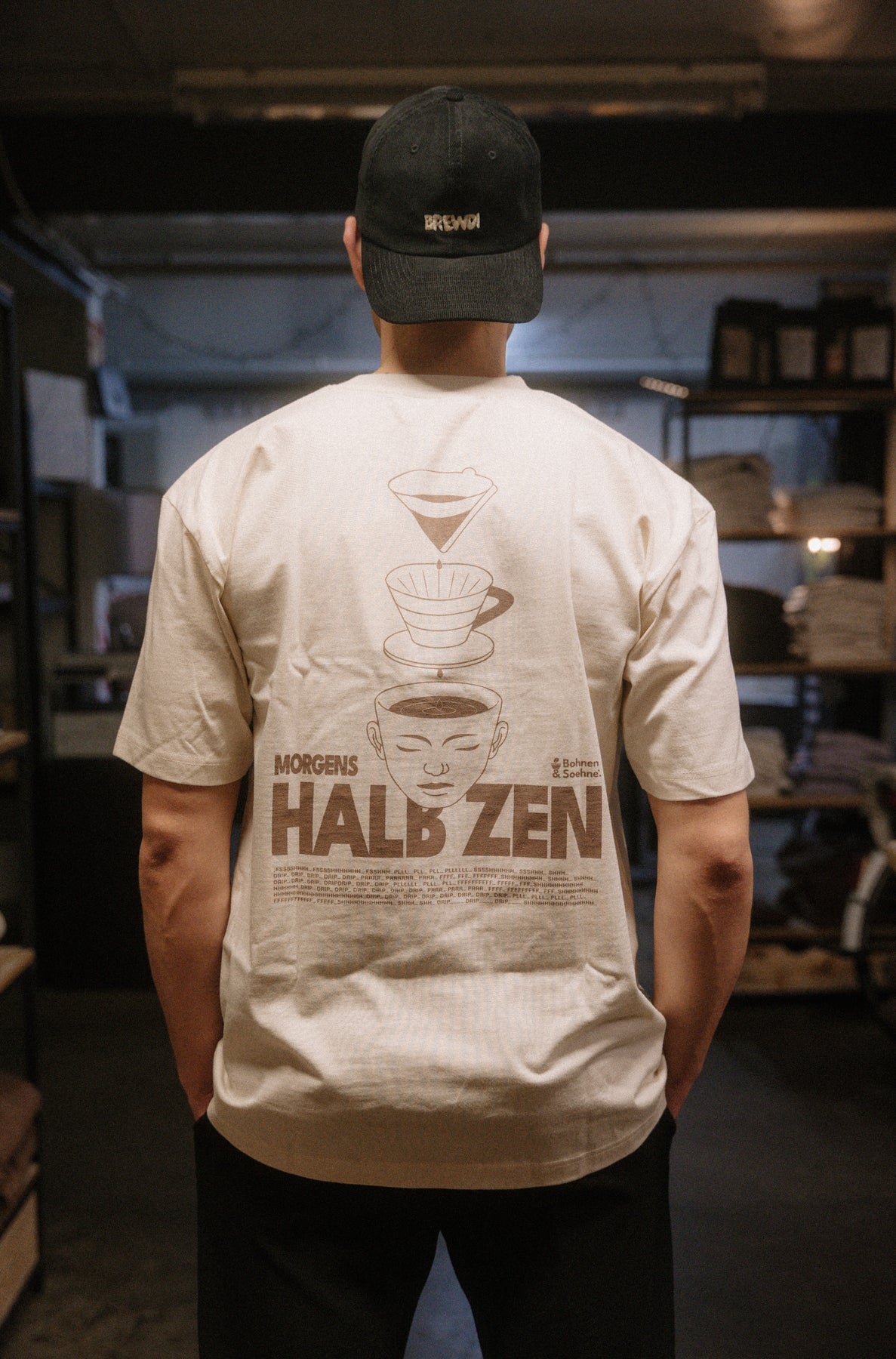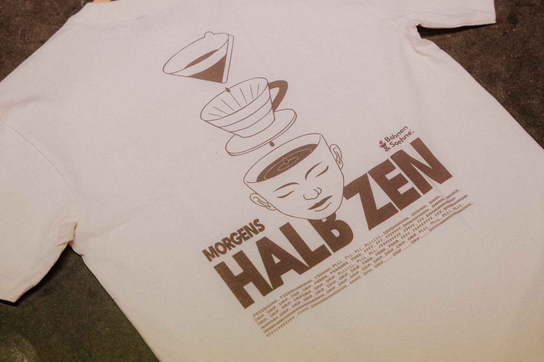 T-Shirt „Morgens Halb Zen“ – Entspannt in den Tag (Creme)
